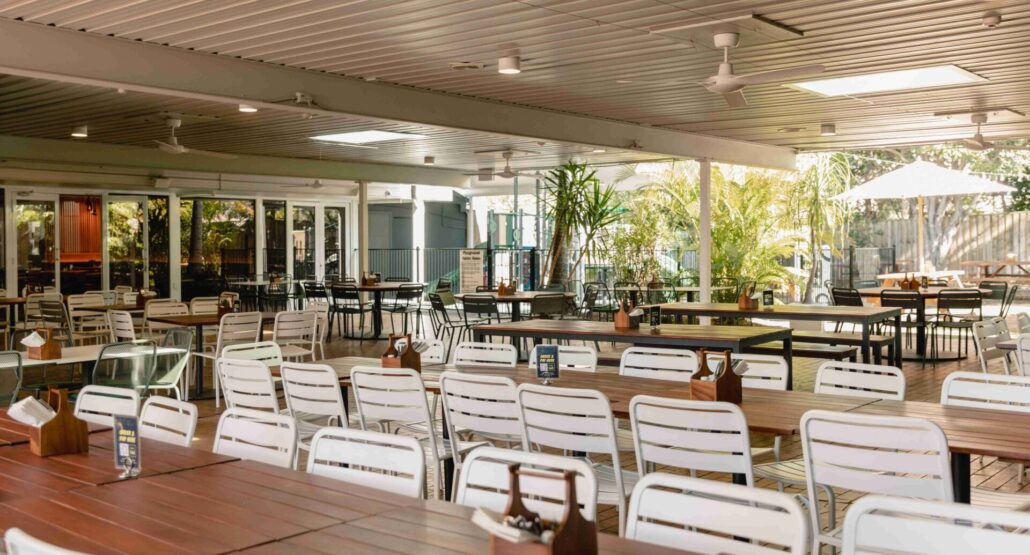 Resembling a large summer patio, this outdoor space captivates the relaxed Queensland culture of being outdoors, socialising with friends and enjoying good food and drinks! It’s ideal for our summer BBQ package or a delicious spit roast shared with friends. It’s also a great spot to host children’s parties as we have our very own kids playground next to the terrace area.